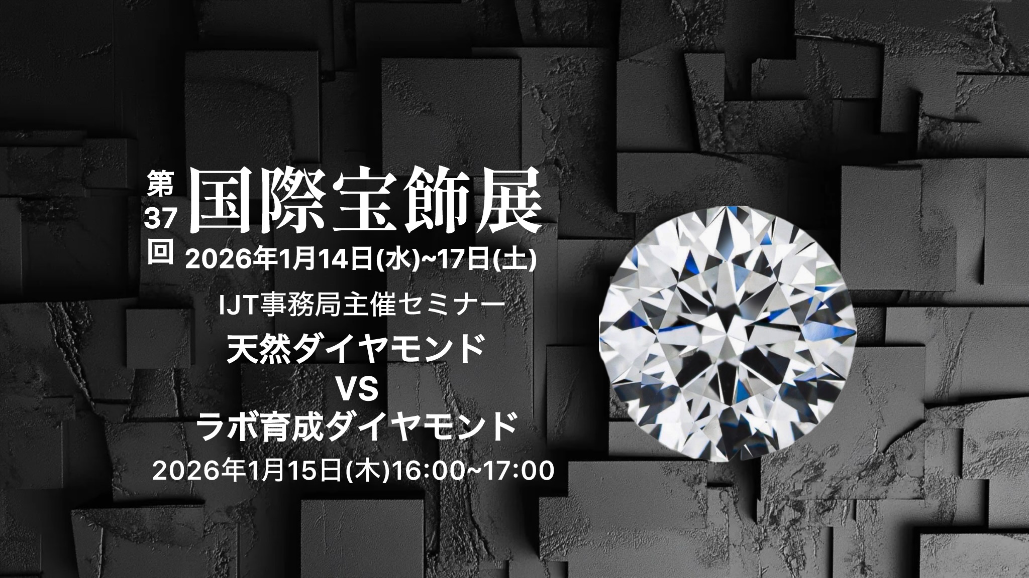 2026年1月14日(水)~17日(土)まで、東京ビッグサイトで開催される国際宝飾展(IJT)において、業界内で注目を集めるテーマ「天然ダイヤモンド vs ラボ育成ダイヤモンド」に関するセミナーが開催されます。このセミナーは過去最大の集客スペースとなる300人が収容可能な会場を確保し、業界の転換期を議論する場となることが期待されています。