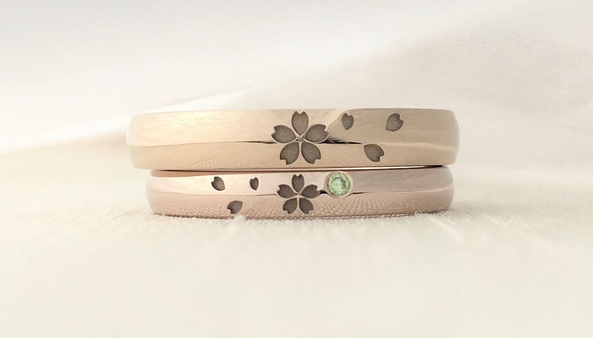 想いを込めたモチーフ: 「桜」や「星」、大切なペットの肉球まで、おふたりの絆を象徴するモチーフを刻めます。