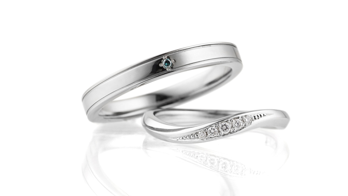 デザインは全く違っても、「素材だけ同じにする」「表面のテクスチャー(つや消し加工など)を合わせる」という手法です。 例えば、一人は力強い槌目(つちめ)模様の幅広リング、もう一人は同じ素材で華奢なライン。パッと見は別々でも、根底にある「素材」という本質で繋がっている。これは、自立した大人同士の距離感を美しく表現してくれます。