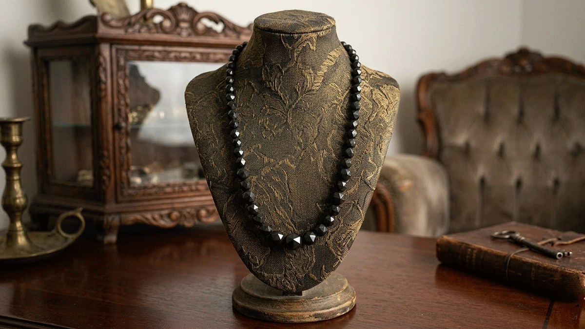 「喪のジュエリー」という歴史的背景を超え、現代ではそのモダンな漆黒が再評価されています。