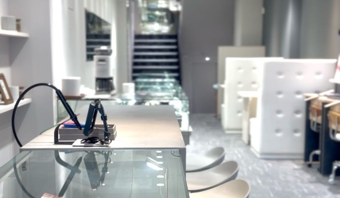 白とグレーを基調とした清潔感のある空間で、初めての人でも緊張せずに入れる雰囲気です。スタッフがチェーンの種類や素材、溶接の流れまで丁寧に説明してくれるため、ジュエリー選びから装着まで安心して楽しめます。
