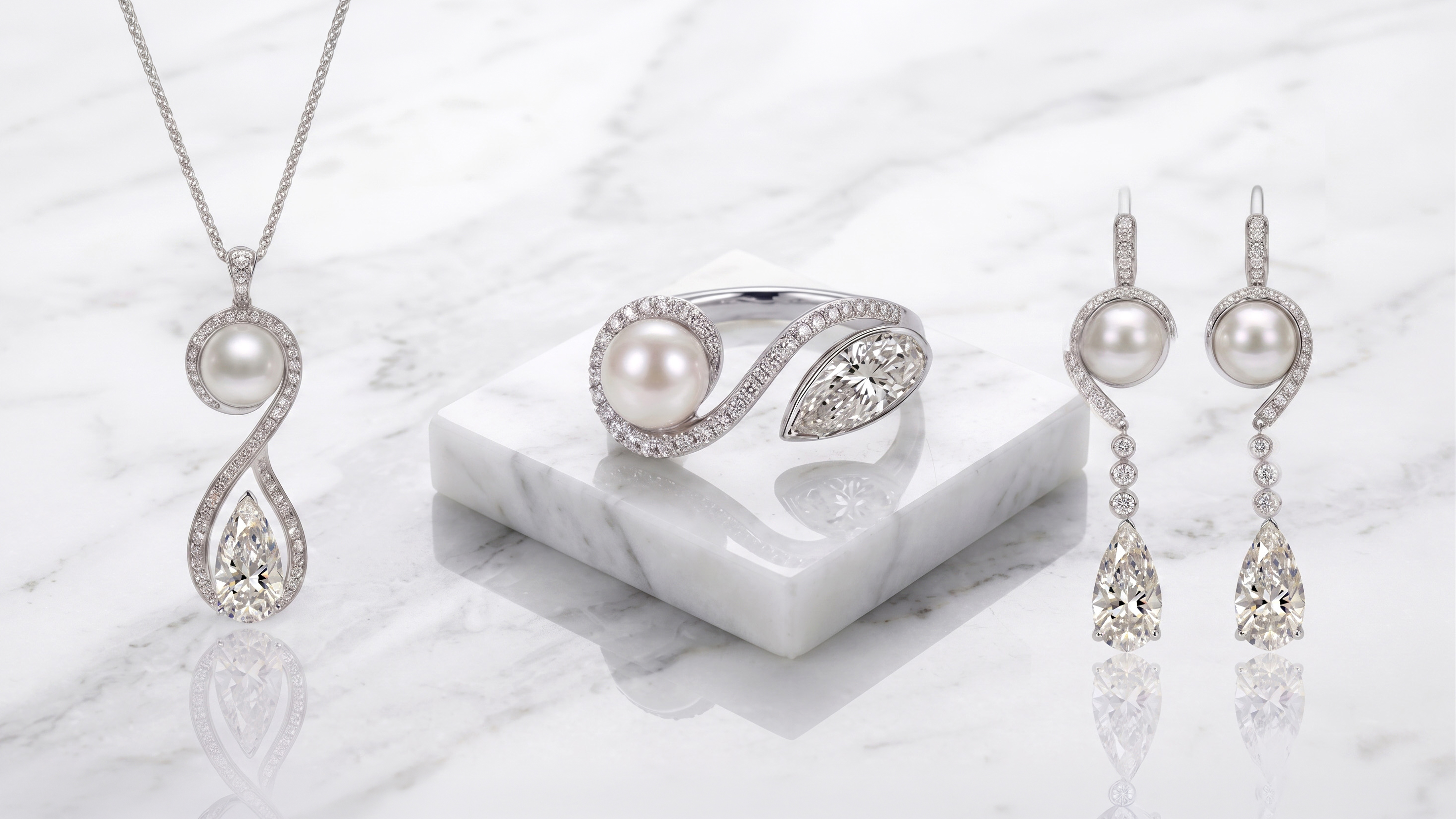 「真の美しさを阻害する要素を排除する」という共通の哲学を持ちながらも、ふたつの素材が放つ光は完全なる対極にあります。ルシルカットが放つ「シャープで力強い光」と、無調色真珠の「柔らかく温かみのある光」。 この対極の質感がひとつのジュエリーの中で交わることで、息を呑むような立体感と存在感が生まれます。相反するはずの輝きが互いを高め合い、比類なき調和(ハーモニー)を生み出しているのです。素材そのものが持つ「ピュアな真実」を愛する方へ。飾らない本物の美しさを纏う誇りとともに、『Lucir Mare』はあなたの肌で永遠の光を放ち続けます。