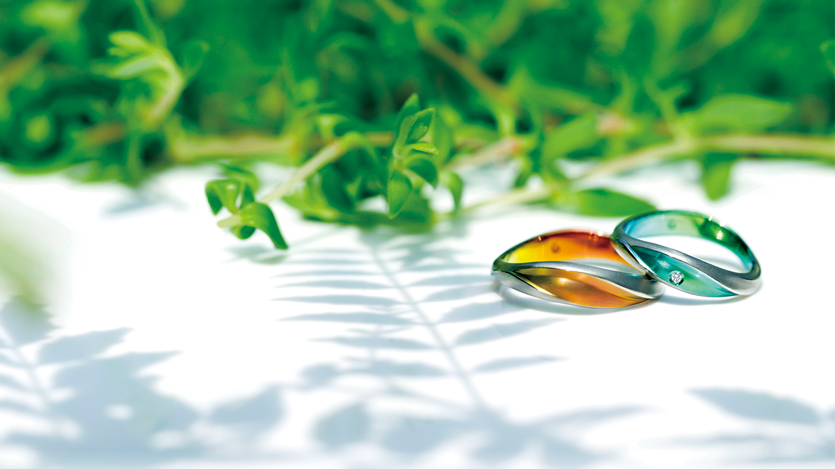 四季の情景が見せる美しさを表現したシリーズ。常に同じではない自然の表情は、さまざまなことが起こる人生そのもの。指輪の色に込めた記憶や感情が、ふたりのこの先を鮮やかに彩り、ともに歩んでいく日々の支えとなるよう願いを込めて。