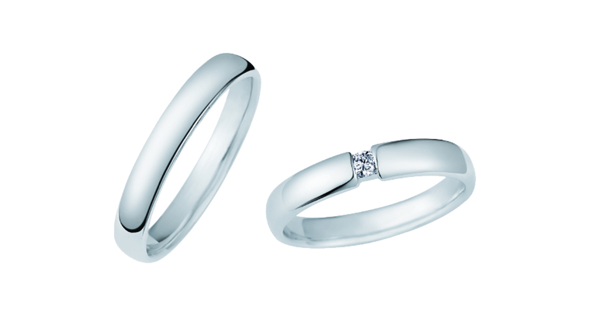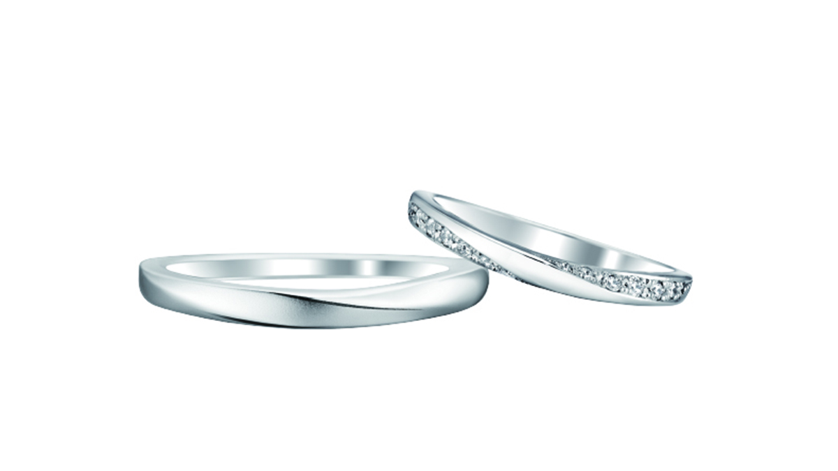 全体的に丸みを帯びた優しいフォルムで、指当たりが滑らかなデザインです。メレダイヤモンドを左右から挟み込むようにセッティングされていることで、上下から光をダイレクトに取り入れ、ダイヤモンド本来の輝きが最大限に引き出されるようなデザインになっています。王道のストレートでありながら、個性を感じられ、プラチナの重厚感も味わえる『シンプルを極めた贅沢』をカタチにしたような結婚指輪です。