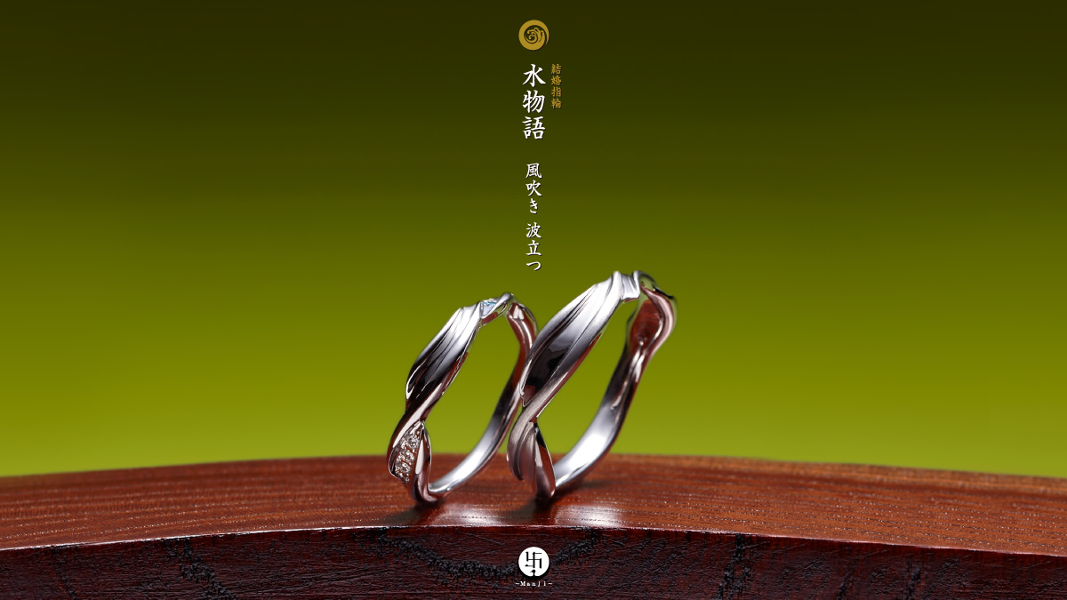 ブルーダイヤモンドの魅力を最大限に引き出してくれるブランドが、京都のブライダルジュエリーメーカー『萬時 -Manji-』です。萬時の婚約指輪・結婚指輪は、和の文化や京都の風景・思想をもとに、一つひとつ深い意味を込めてデザインされています。デザインは単なる装飾ではなく、様々なテーマから発想されており、身に着けることで結婚後の生活を優しく彩ります。他のブランドにはない、物語性のある指輪を求める方に選ばれています。